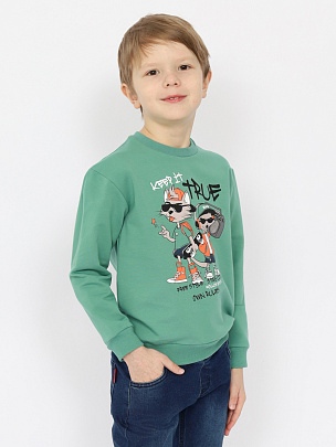Спортивый костюм для мальчика, из плотного трикотажа, куртка на молнии с воротником стойкой, с контрастными элементами отделки. Пояс брюк и манжеты брючин из полосатой резинки.