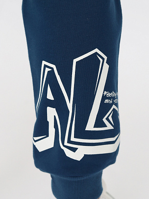 Брюки с притачным поясом и манжетами. Пояс из основного полотна и эластичной резинкой внутри. Низ брюк с притачными манжетами из полотна с добавлением лайкры. Задняя часть декорирована принтом "Реальный".
