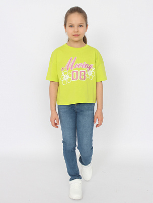 Футболка с ярким блестящим принтом для девочки, выполненная из мягкого хлопкового трикотажа, который прост в уходе, позволяет телу дышать и комфортен в носке. Актуальный крой оверсайз с заниженной линией плеча не сковывает движения, позволяя ребенку быть активным. Модель дополнена круглым вырезом горловины и свободными рукавами длиной до локтя.