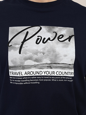 Футболка оверсайз длиной до бедер. Рукав до локтя. Круглая горловина обработана узкой притачной обтачкой из рибаны с эластаном. Полочка декорирована принтом "Путешествуй по своей стране. Мы живем во времена, когда довольно легко добраться в любую точку планеты. Поэтому неудивительно, что путешествия становятся все более популярными. Более того, наша современная жизнь невозможна без путешествий".