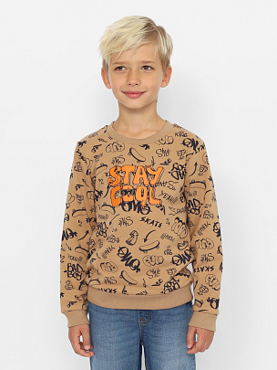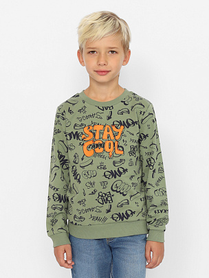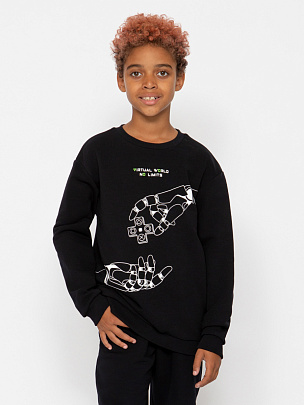 Джемпер для мальчика со спущеным плечом. Рукав втачной с манжетами. Боковые швы джемпера смещены на полочку, низ джемпера обработан поясом с разрезами. Воротник-стойка отложной. Манжеты и пояс выполнены из основного материала.