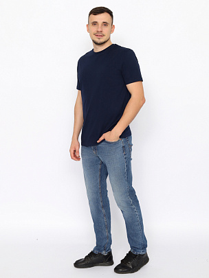 Футболка мужская с коротким рукавом. Вырез горловины круглый, обработан притачной бейкой из рибаны с эластаном.