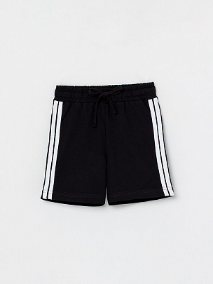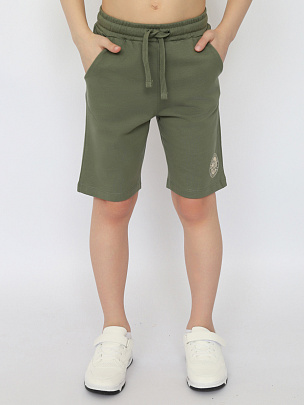 Шорты для мальчика с боковыми карманами и притачным поясом из основного полотна. В пояс вставлена резинка и функциональный шнур.